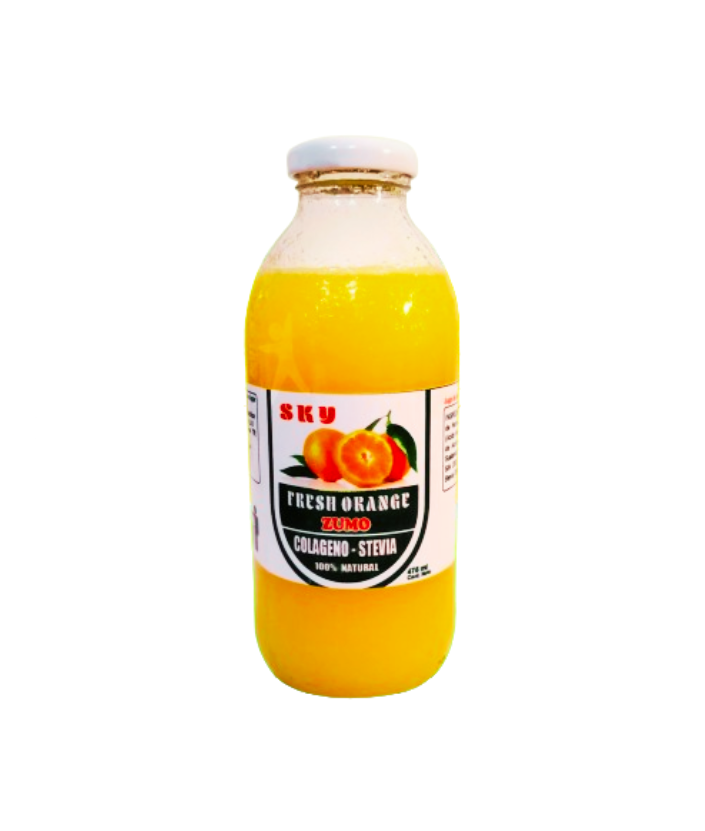 Nuestra bebida natural es elaborada a partir de zumo de naranja que, por su elevada calidad y la mejor selección, se consigue un sabor único y refrescante. Enriquecida con colágeno hidrolizado y endulzada con stevia que le brinda beneficios a la salud y la piel. Sky Fresh Orange, Colágeno y Stevia es fabricado bajo altos estándares de calidad, cumpliendo la normativa alimentaria vigente para brindar un producto inocuo a nuestros consumidores.
